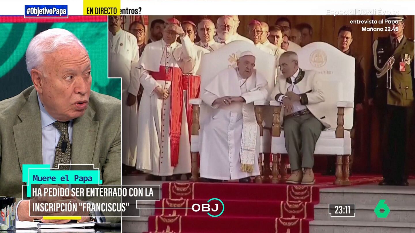 ¿Y el papa Francisco? Margallo ha valorado de forma positiva que "ha abierto unos caminos a la iglesia que ya era hora de empezar a explorar". En ese sentido, ha recordado que el hasta sumo "ha tenido una enorme sensibilidad por la desigualdad económica, por la lucha por el medio ambiente, por la paz". Incluso, indica que "las cuatro encíclicas" que ha leído del argentino "son realmente muy entrañables". Al fin y al cabo "es un jesuita", como él.