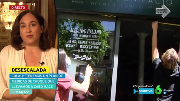 Ada Colau, alcaldesa de Barcelona, entrevistada en El Objetivo, se ha congratulado del acuerdo alcanzado por todos los grupos del consistorio, "por unanimidad", para hacer una subvención del 75% de la tasa de las terrazas de bares y restaurantes, "que lo tienen especialmente difícil para mantener las mesas con las distancias de seguridad necesarias".