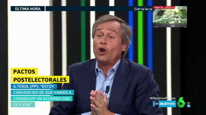 Antonio González Terol ha desvelado en El Objetivo cual va a ser la estrategia del PP para llegar a acuerdos en ayuntamientos y comunidades: "Nosotros nos vamos a sentar a hablar con Vox y con Ciudadanos y vamos a intentar que el centro derecha español que puede llegar a gobernar 30 capitales de provincia".
