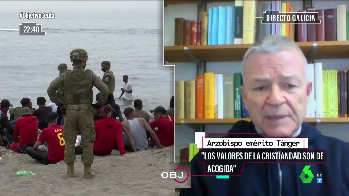 El arzobispo emérito de Tánger, Santiago Agrelo, ha respondido a quienes hablan de "invasión" ante la llegada de migrantes a las costas de Ceuta y les recuerda que "los valores de cristiandad son valores de acogida y de abrazar a quien está necesitado". Así, critica que se utilice el lenguaje para criticar a estos jóvenes que tratan de atravesar la frontera: "Se les atribuye comportamientos violentos y hay que decirlo, los muertos se cuentan entre los migrantes, no entre la sociedad civil ni las fuerzas del orden. Los mutilados se encuentran entre los migrantes, no entre nosotros".