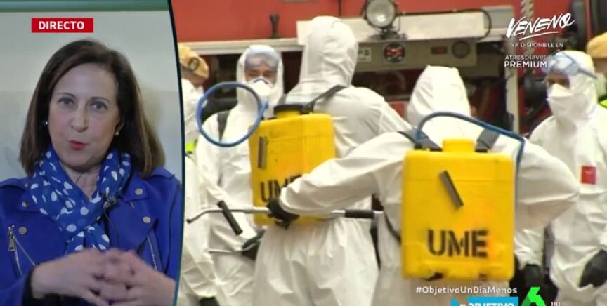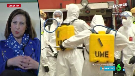 En lo referente a si la UME cuenta con el material de protección necesario, Margarita Robles ha reconocido: "Cuando la UME sale a los trabajos de desinfección o cuando realizan operaciones muy duras como las que se están haciendo en Madrid de traslado de cadáveres, intentamos que todo el mundo salga con las correspondientes medidas de precaución, pero es evidente que hay limitaciones".