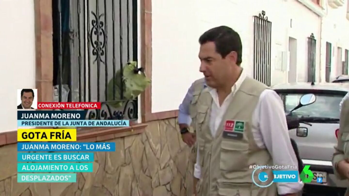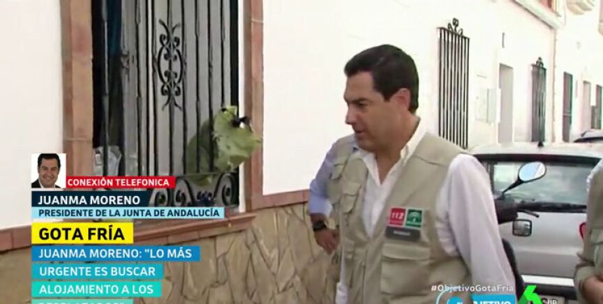 Ana Pastor entrevista al presidente de la Junta de Andalucía sobre la situación que vive la Comunidad tras sufrir las consecuencias de la gota fría que asola España. Juanma Moreno destaca que "lo más urgente es buscar alojamiento a los desplazados" ya que hay muchas personas que han perdido sus casas.