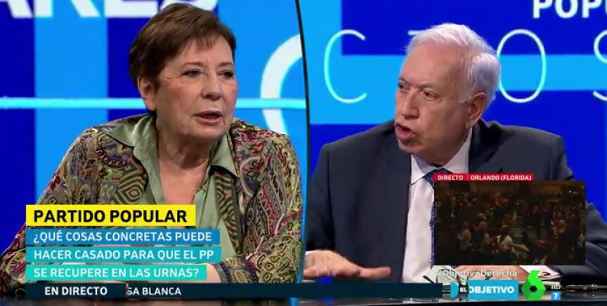Los exministros José Manuel García-Margallo y Celia Villalobos están de acuerdo en que Pablo Casado debería de apostar por unificar a la derecha bajo el Partido Popular, apostando por el centro, pero rozan a la hora de elegir si unificar a los tres partidos o solo a Ciudadanos y PP. Cuando Margallo se disponía a explicar sus argumentos, la 'popular' le ha cortado protagonizando un encontronazo en el plató de El Objetivo.