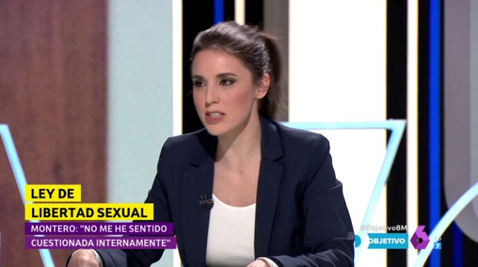 Irene Montero niega haberse sentido cuestionada internamente tras las discrepanciasen el seno del Gobierno de coalición a raíz de su proyecto de Ley de Libertad Sexual. "Al contrario, de hecho tengo que agradecer a Pedro Sánchez que haya visto con claridad, desde el principio, desde antes de formar gobierno, que esta ley tenía que ser una ley que saliese con urgencia", ha afirmado en El Objetivo.
