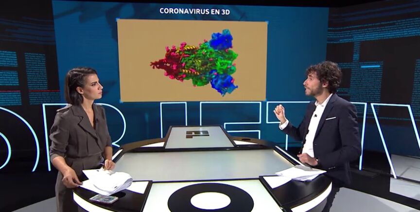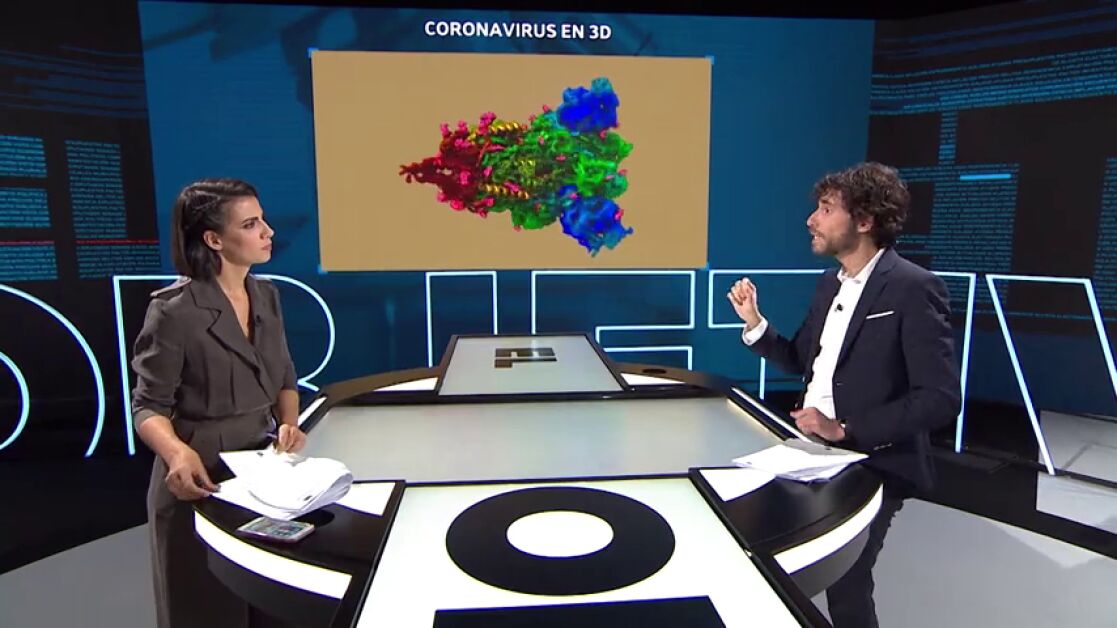 La imagen, mostrada por Mario Viciosa en el plató de El Objetivo, muestra "una parte relevante" del coronavirus, concretamente una de las puntas de la corona, la que le permite abrirse paso en una célula para colonizarla y así poder tomar vida.