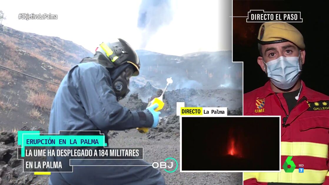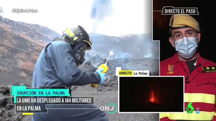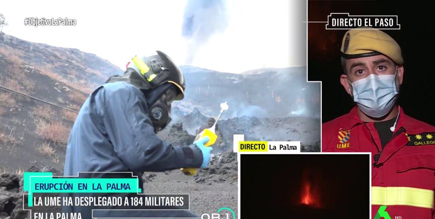 El teniente coronel Alberto Gallego ha analizado en El Objetivo la situación del volcán de La Palma, en la que trabajan numerosos efectivos para evitar daños mayores, ayudar a la población a recuperar sus enseres y controlar la calidad del aire.