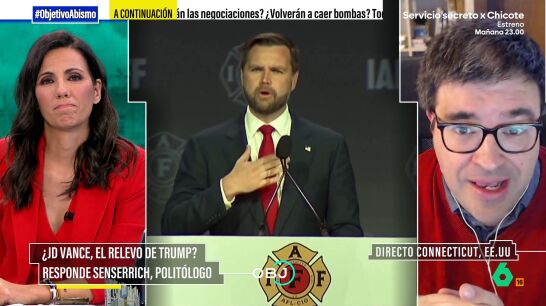 El politólogo Roger Senserrich ha explicado en El Objetivo desde Connecticut (EEUU) cómo es el cargo de vicepresidente en Estados Unidos y las posibilidades del actual, JD Vance, de llegar a la Presidencia del país, para lo que ha señalado que "la vicepresidencia es un cargo un poco envenenado".