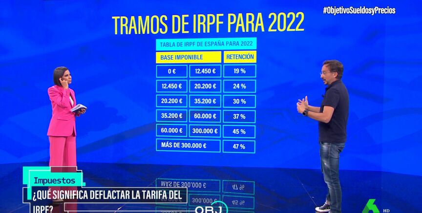 En este sentido, el experto ha explicado qué implica la deflactación del IRPF. "Hay una serie de horquillas, según va aumentando tu renta vas pagando un tipo más alto. Ahora, si te suben los salarios como la inflación empezarías a estar en horquillas más altas y estarías pagando más a pesar de que el poder adquisitivo es el mismo". Sin embargo, ha explicado que bajar los impuestos genera que aumente la demanda y "vas en dirección contraria a la inflación". No obstante, ha propuesto una solución. Puedes escucharla en el vídeo principal de esta noticia.