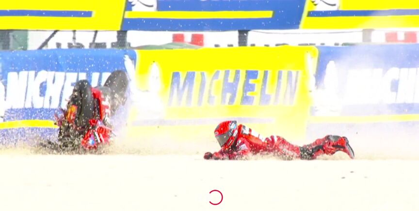 Ahora bien, el actual campeón del mundo de MotoGP reconoce que no se mira a sí mismo cuando se va al suelo: "Yo caigo y lo primero que hago es mirar la moto. Es uno de los puntos fuertes y débiles de que caigo y no suelto la moto muchas veces. No la suelto porque sé que si llega a la grava pues ya se destruye y no puedes seguir".