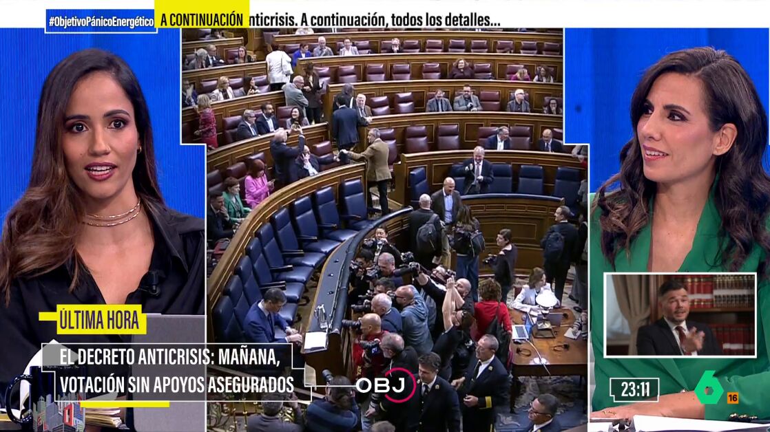 Los detalles "Quiero mandar un mensaje de tranquilidad, porque el Gobierno va a ser responsable y va a trabajar por el acuerdo hasta el último minuto", ha asegurado la diputada de Más Madrid en el Especial El Objetivo: Pánico energético.