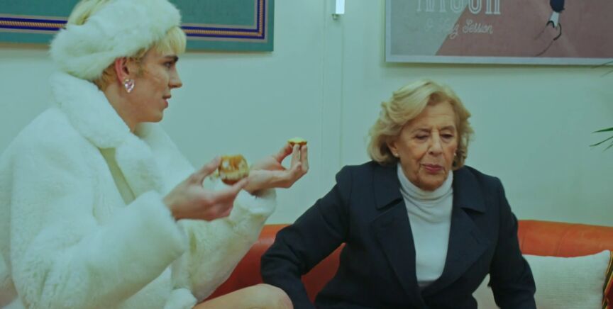 Cuando Samantha Hudson ha agarrado el bollo, Carmena ha revelado que llevaban mantequilla. Esto ha puesto a la artista en un brete: "Dios mío es que creo que he dicho que soy vegana públicamente, entonces a lo mejor esto es como una traición". Como puede verse en el vídeo principal, Samantha Hudson lanzará una pregunta al aire antes de tomar su decisión: "¿Qué importa más el veganismo o Manuela Carmena?".
