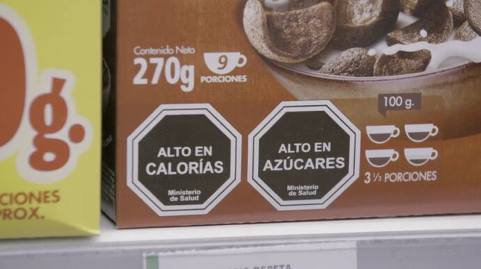 ¿En qué consiste este sistema? Una legislación aprobada en 2016 obliga a indicar con un sello que el producto es alto en azúcares cuando contiene más de 15 gramos de azúcar por cada 100 gramos de producto y si es alto en calorías cuando aporta más de 300 calorías por cada 100 gramos de producto. "Los sellos son negros para que no se confundan con el diseño del paquete", explica la experta. Además matiza que "es más claro para la población que no tiene que descifrar los ingredientes".