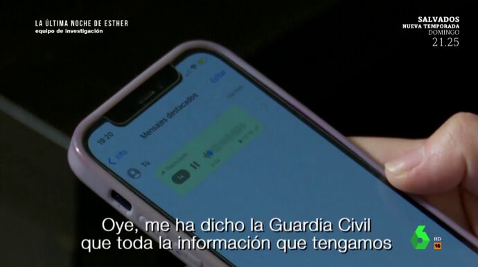 "Iria, buenas tardes, me ha dicho la Guardia Civil que toda la información que tengamos, que les llame o les mande un correo. Más que nada, para que me lo reenvíes y mandárselo, que lo miren y lo investiguen", se escucha en el audio de WhatsApp que le envío.