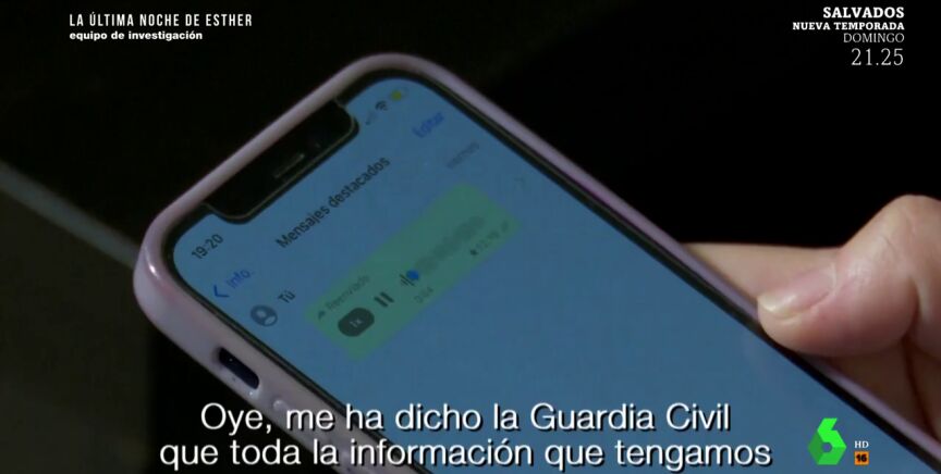 Iria, amiga de la joven, facilitó a Equipo de Investigación, en un programa de 2022 que laSexta ha vuelto a reemitir este domingo, el audio que le envió Óscar mientras buscaban a Esther.