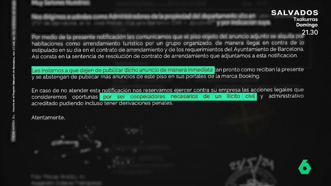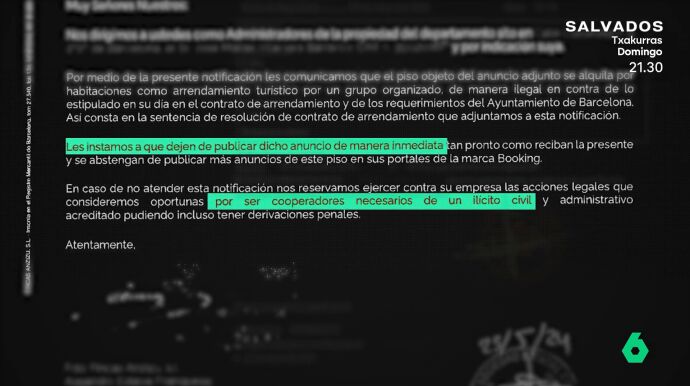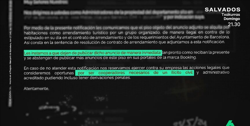 En ese momento comenzó su pesadilla. Se puso en contacto con Booking, la plataforma donde se anunciaba el piso turístico ilegal, para que retirara el anuncio. A pesar de su insistencia, han pasado tres años y el anuncio sigue publicado. "Ni se han dignado en dirigirse a mí", denuncia en este vídeo.