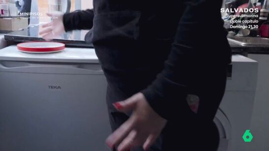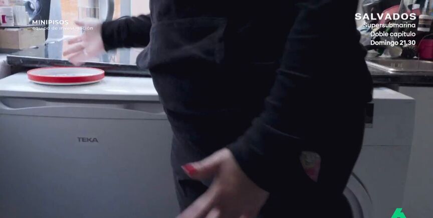 "Comemos encima de la nevera, y nos podemos sentar en la lavadora y comer ahí. Aquí pagamos 550 euros más la luz. Esto me lo enseñaron dos mujeres chinas. Una viene y te cobra a mano el alquiler", prosigue la inquilina.