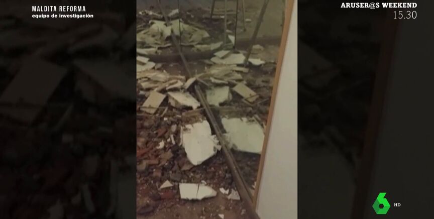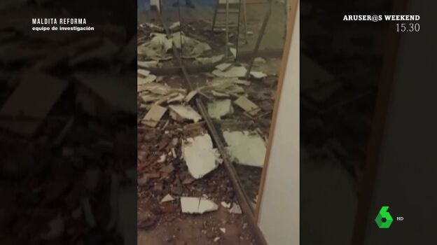 Según denunció, el reformista utilizó pedazos de puerta para ahorrarse poner ladrillos y, cuando llegó el momento de pintar, la pared cedió: había usado un saco vacío para rellenarla. Además, tiraron escombros por la bajante, causando enormes destrozos en el piso inferior, tal y como puedes ver en el vídeo principal que acompaña a esta noticia.