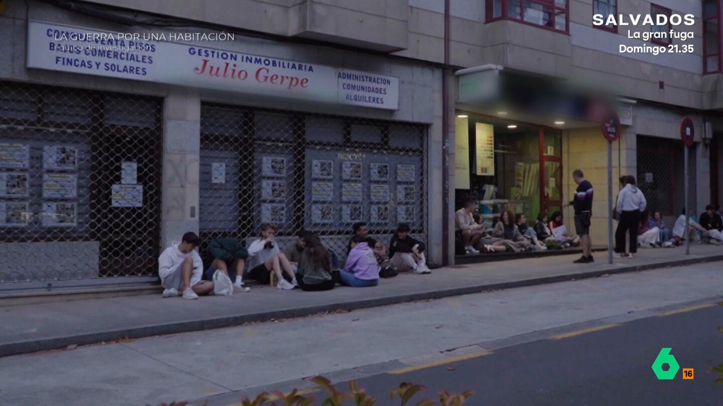 Futuros científicos, sanitarios o ingenieros han pasado la noche en vela para hacer cola a las puertas de una inmobiliaria en pleno centro de Santiago. En total, 2.000 universitarios se disputan 300 pisos. Sin embargo, muchos descubren que los que habían visto en Internet "han desaparecido de la web". "Yo creo que si llega una persona y dice que paga la fianza ahora, ya no enseñan el piso", expresa uno de los afectados