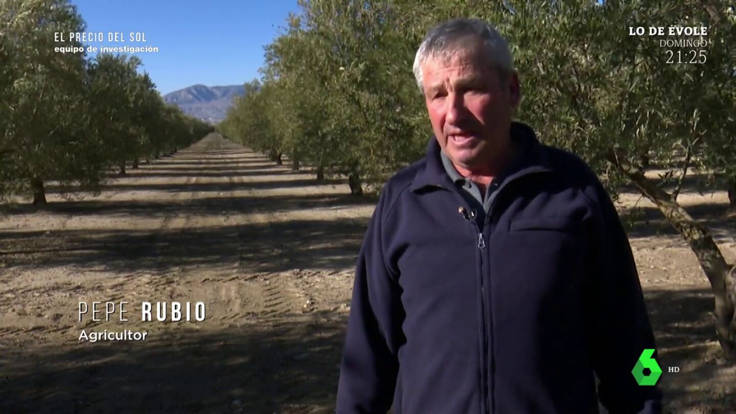 Entre ellos se encuentra Pepe Rubio, agricultor dedicado al olivo al que Equipo de Investigación entrevistó para el programa de 'El precio del sol' que se estrenó en febrero de 2022 y que laSexta vuelve a emitir este viernes. Explicó que dedica "mucho esfuerzo, sacrificio e ilusión" a sus árboles, que son su medio de vida y ahora se encuentra con que quieren arrebatárselo.