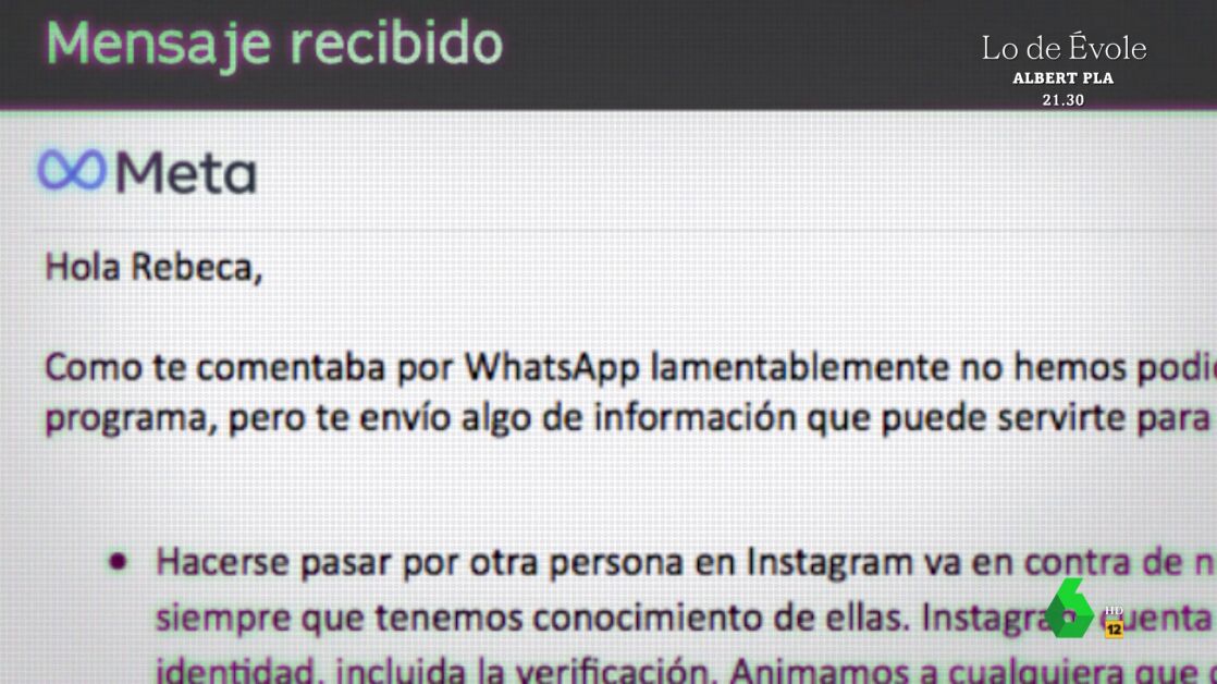 Además, en este vídeo, explicó que se puso en contacto con Meta, el conglomerado estadounidense de tecnología y redes sociales al que pertenecen Facebook e Instagram, y siempre recibía la misma respuesta: "No hemos tenido tiempo de revisar su solicitud, pero no vemos que el perfil que estás reportando viole las normas comunitarias".