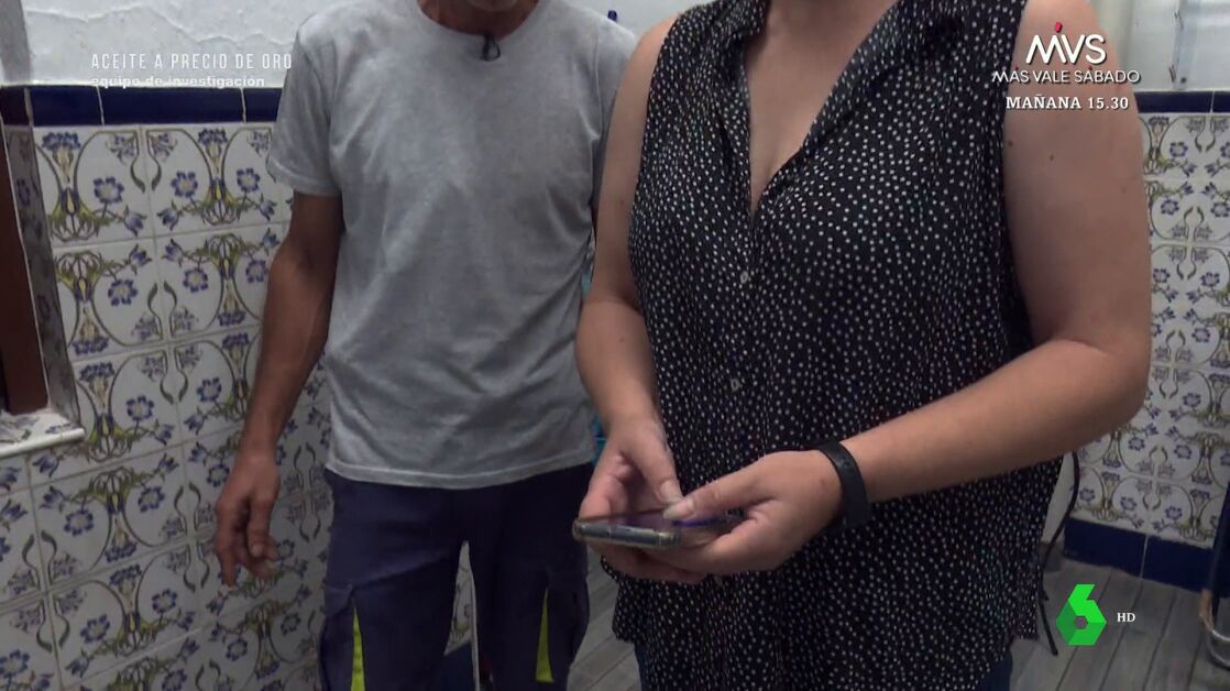 Entre las decenas de casos de fraude, Equipo de Investigación conoció en 2023 el que se produjo en Miajadas, Cáceres. Allí, un comercial ofrecía en su furgoneta aceite de una marca desconocida a los vecinos. Un funcionario del Ayuntamiento compró seis garrafas aparentemente de virgen extra. "Este es el que hemos comprado y este otro el que teníamos nosotros, de nuestras aceitunas", indicaba entonces el hombre. Se pude observar la diferencia de colores: uno parece de oliva, mientras que el otro pasaría por ser de girasol.