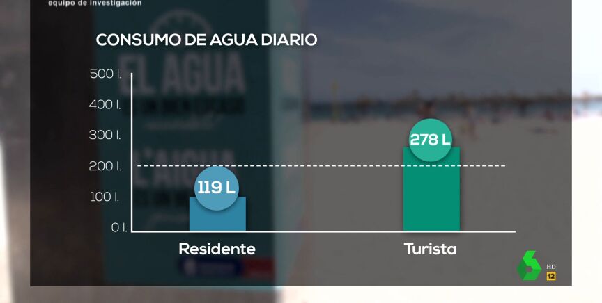¿Está la isla preparada para multiplicar por 12 su población? La gestión del agua es el mayor problema porque residente consume de media entre 100 y 200 litros al día, pero el turista gasta el doble.