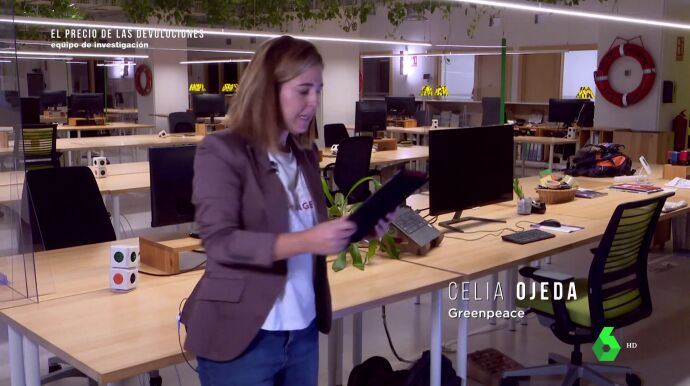 Así, el programa mostraba una grabación del interior del centro a Celia Ojeda, directora del Área de Biodiversidad de Greenpeace España, que detallaba la dimensión de la destrucción de productos devueltos de Amazon. "Una media de 220.000 productos al día que son destruidos, productos que se encuentran en buenas condiciones y podrían ser revendidos otra vez", denunciaba la activista.