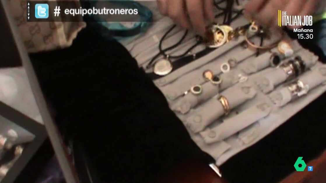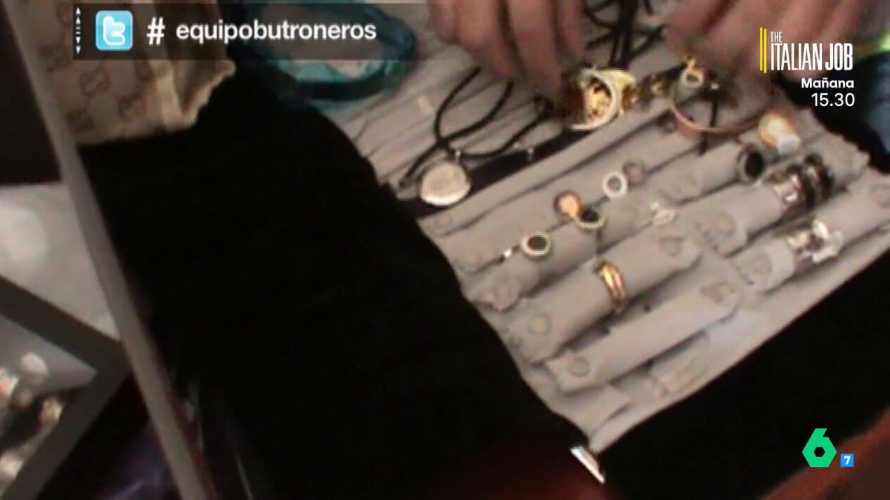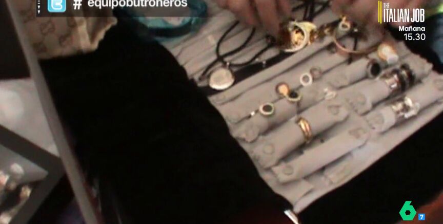 Allí, los efectivos encuentran joyas de las cuales algunas son imitaciones de gran calidad, mientras que otras son auténticas, pero con el número de serie borrado. Más allá de los lujos, cuya procedencia se presenta sospechosa y que los agentes justifican en que "esta gente con el dinero que maneja todo lo compran", también hallan grandes cajas de herramientas dignas de un profesional.