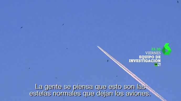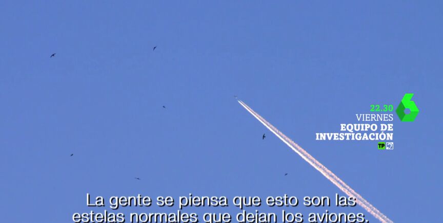 Equipo de Investigación pone cara a los negacionistas del cambio climático en el reportaje de estreno titulado 'Conspiranoicos'. Esta noche, el programa presentado por Gloria Serra evidencia cómo se cuelan sistemáticamente teorías conspirativas, catapultadas por las redes sociales. Una de ellas, la de las estelas que dejan los aviones, propaga el bulo de que estamos siendo víctimas de fumigaciones masivas clandestinas, promovidas por intereses superiores, que están provocando sequías intencionadamente.