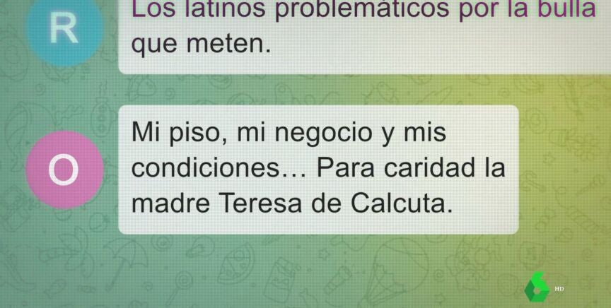 Algunos mensajes llegan a justificar estas exclusiones con argumentos claramente racistas y deshumanizadores: "Persona sola con hijos... como les cueste pagar, no los sacas ni con calzador". La consigna que se repite es evitar cualquier posible complicación, incluso a costa de discriminar. "Para caridad, la madre Teresa de Calcuta", zanjan en el chat.