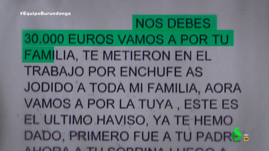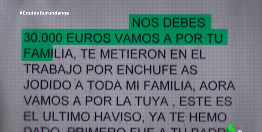 "Nos debes 30.000 euros, vamos a por tu familia", reza una de las notas, que agrega: "Sabes perfectamente quién soy. Danos el dinero de una vez, nos has pagado ya 200.000 euros, páganos los 30.000 y te dejamos en paz, te lo juro por mis muertos".