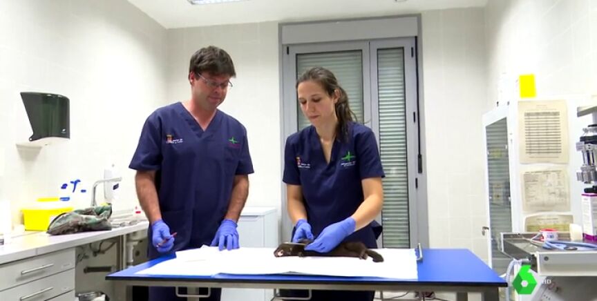 Donde el veterinario Gabriel de Pedro explica que el visón americano gana en todo al europeo: "Es más agresivo, cría más, más pronto y, además, le elimina físicamente". Finalmente, los veterinarios le aplican la eutanasia. Sólo en los ríos de Burgos, se capturan 400 visones cada año. Acabar con cada ejemplar, que recientemente se ha demostrado que son portadores de la toxoplasmosis, le cuesta a la Junta de Castilla y León 1.000 euros.