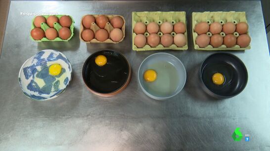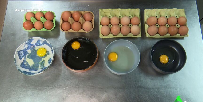 ¿Qué huevos prefieren los españoles? Equipo de Investigación hizo una cata con varias personas dándoles a probar huevos ecológicos, camperos, de gallinas de suelo y enjauladas. A la hora de elegir el producto, el color de la yema fue determinante.