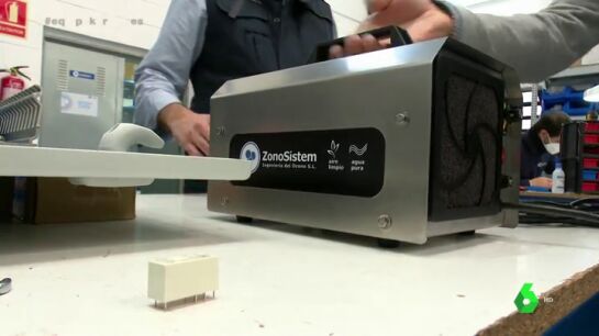 A continuación, muestran un equipo económico y de fácil uso que "es muy útil para ubicarlo en un comercio". "Cuando no haya nadie hace un tratamiento potente y automáticamente cuando se reabre ese negocio o se accede nuevamente, ya no hay ningún riesgo de toxicidad", indica Sergio Sánchez, tras lo que añade Valenzuela que el principal uso de sus equipos suele ser para el "tratamiento de aguas residuales y depuración de aguas o piscinas".