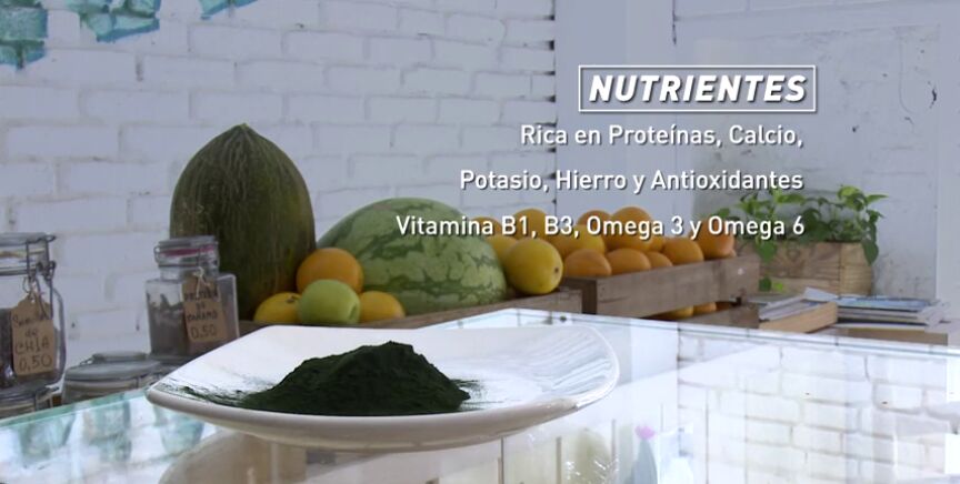 Se considera el alimento más completo y fue descubierto en un lago en medio del desierto. Un sólo kilo de este espirulina equivale a una tonelada de verduras por sus propiedades nutritivas.
