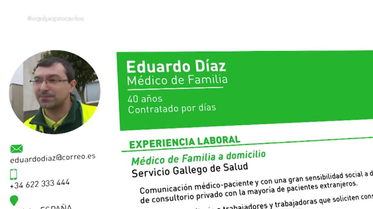 Además de los pacientes de Sanxenxo, Eduardo Díaz, médico de familia, atiende a otros 5.000 diseminados por 17 parroquias. Afirma que lleva 50 contratos acumulados en seis años. "Tengo un calendario que voy confeccionando y tengo que ir al INEM los días que no tengo contrato para cotizarlos", explica.