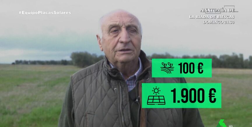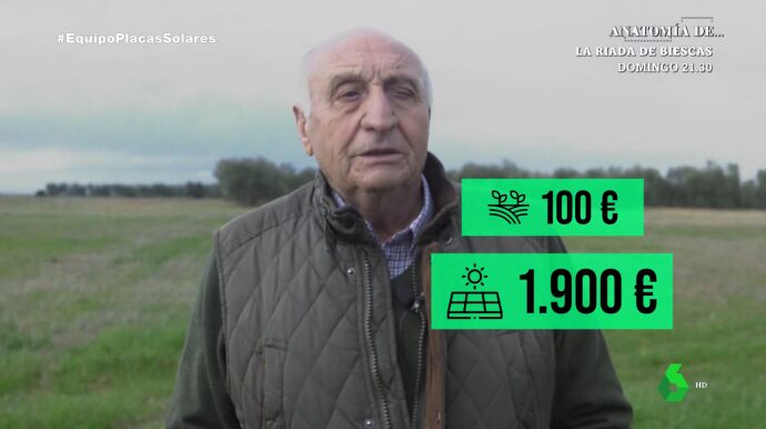 Uno de los agricultores que ha decidido prescindir de algunos de sus cultivos para ganar más dinero es José Portillo, que cuenta a al programa que ha puesto en alquiler 15 hectáreas de un terreno donde antes tenía trigo, pipas y garbanzos. Su principal motivo es el económico, porque con su edad, cuenta, le viene muy bien el dinero que le ofrece la empresa de placas solares para "vivir mejor y viajar un poco", algo que no ha podido hacer nada.