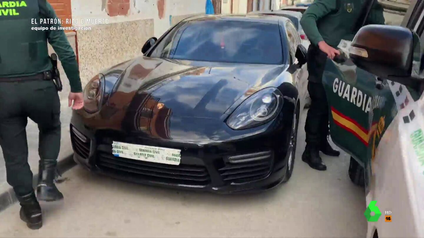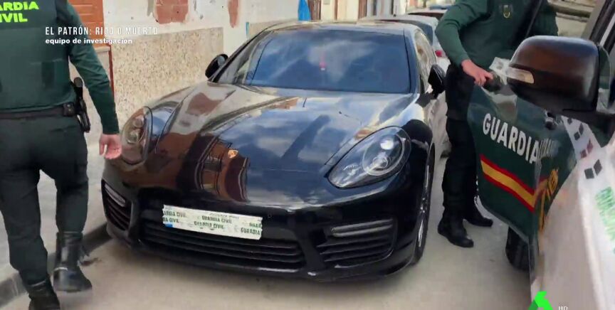La Guardia Civil saca detenida a la mujer de 'El Patrón' y le sigue su marido y líder del clan. La cámara se fija en el coche que se encuentra en la puerta. Sorprende ver un Porsche Panamera aparcado en el pueblo con la renta más baja de Cádiz.