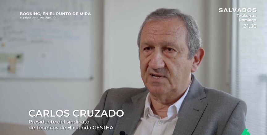 Según los últimos datos registrados, la filial de Booking en España facturó más de 42 millones de euros; y el 100 % del accionariado de la plataforma de reservas online pertenece a Países Bajos. Equipo de Investigación entrevista a Carlos Cruzado, presidente del sindicato de Técnicos de Hacienda GESTHA.