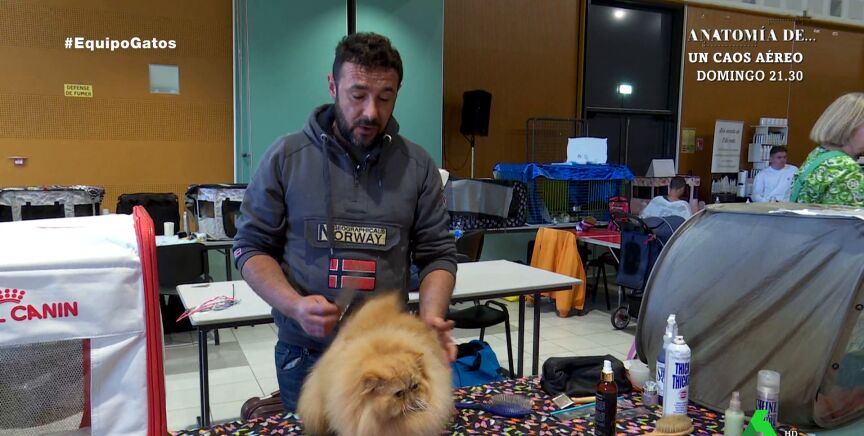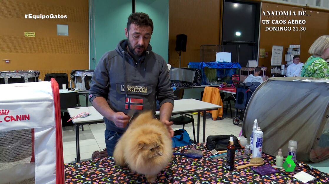 Tony, un madrileño, concursa con un gato persa llamado Wifi. Su objetivo es que su felino sea premiado como el mejor gato de Europa. "Voy fatal de tiempo porque la exposición empieza en 20 minutos y tengo que peinarlo, arreglarlo y darle de comer", explica a Equipo de Investigación.