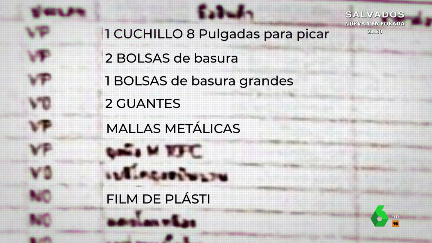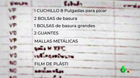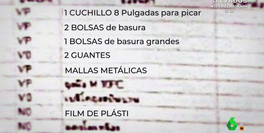 Equipo de Investigación consigue el tique de la compra que hizo Daniel Sancho: un cuchillo, bolsas de basura, guantes, 120 metros de film de plástico, gomas de atar, estropajos y algo de fruta.