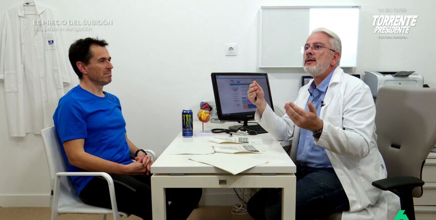 Alejandro Berenguel, cardiólogo deportivo del hospital HM IMI Toledo analiza sus resultados. Además de la tensión un poco más alta, registran que Gabriel tenía entre 15 y 20 latidos más en reposo. Durante el ejercicio, ha llegado hasta los 169, 9 más que el día anterior, y ha corrido a un kilómetro por hora más de velocidad.