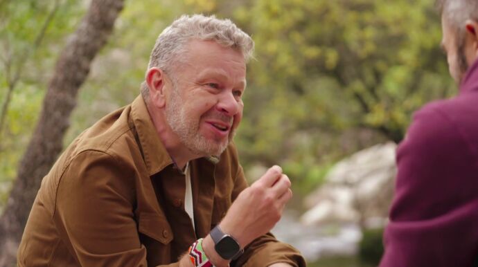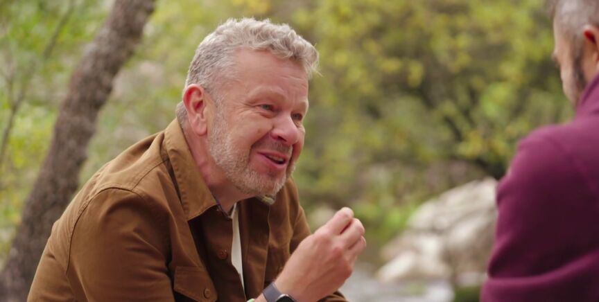 Alberto Chicote y Roberto Leal se sientan a descansar de la ruta que están haciendo por Segovia y Leal pregunta al presentador sobre el matrimonio.