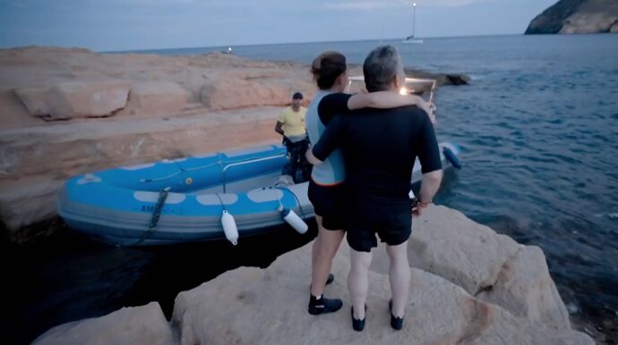 "Ha sido un día cojonudo", asegura Alberto Chicote. Al salir del agua, ambos se quedan miran el mar y la luna: "¿Se puede pedir más?".