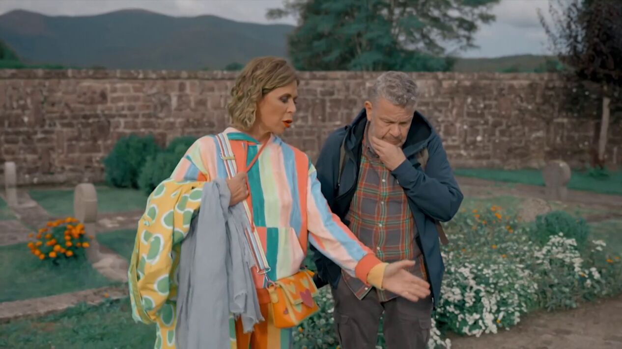 Ágatha Ruiz de la Prada entra con Alberto Chicote al cementerio de Burguete, que fue diseñado en 1964 por Miguel Gartari, una de las figuras más prolíficas de la arquitectura navarra: "Tengo un poco de miedo de estar aquí", le confiesa dentro.