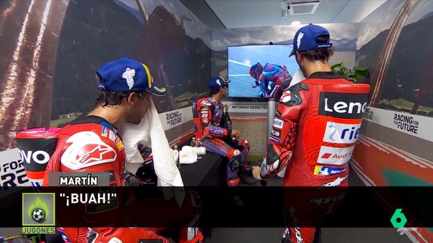 Marc Márquez tuvo una muy mala salida en Austria. Sobre ella hablaron, antes del podio, Jorge Martín y Pecco Bagnaia. "El holeshot, el delantero", dijo el italiano ante un perplejo madrileño.