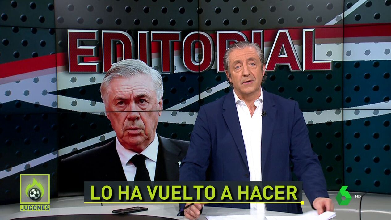 "Lo ha vuelto a hacer. Otra vez una remontada. Otra vez Ancelotti acierta con los cambios": así de contundente ha arrancado Josep Pedrerol su editorial en 'Jugones' para analizar lo ocurrido entre Real Madrid y Atlético.