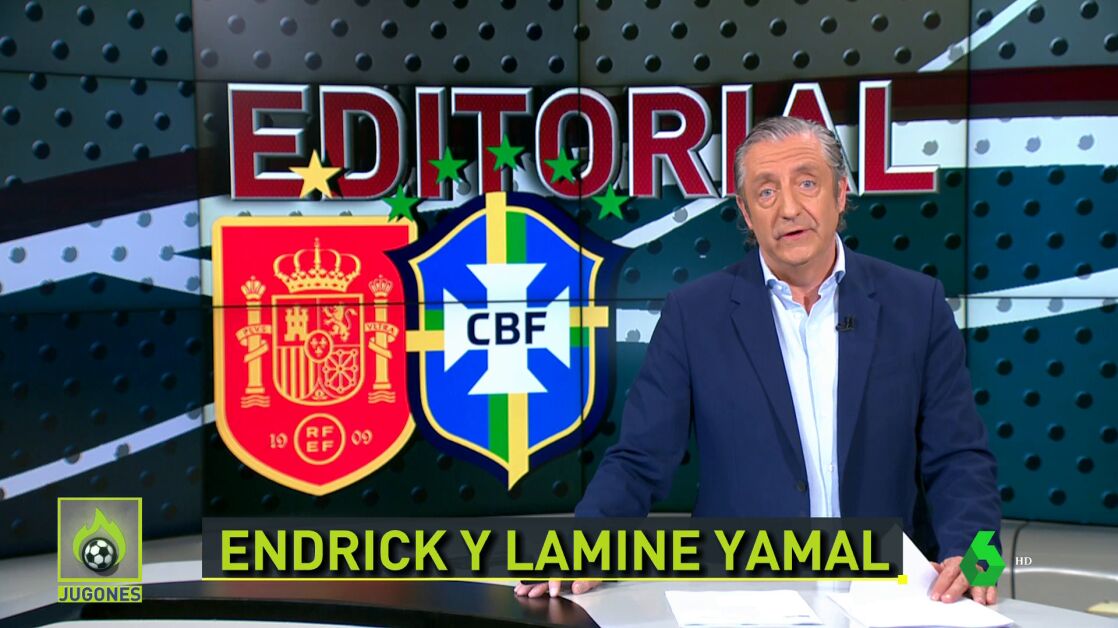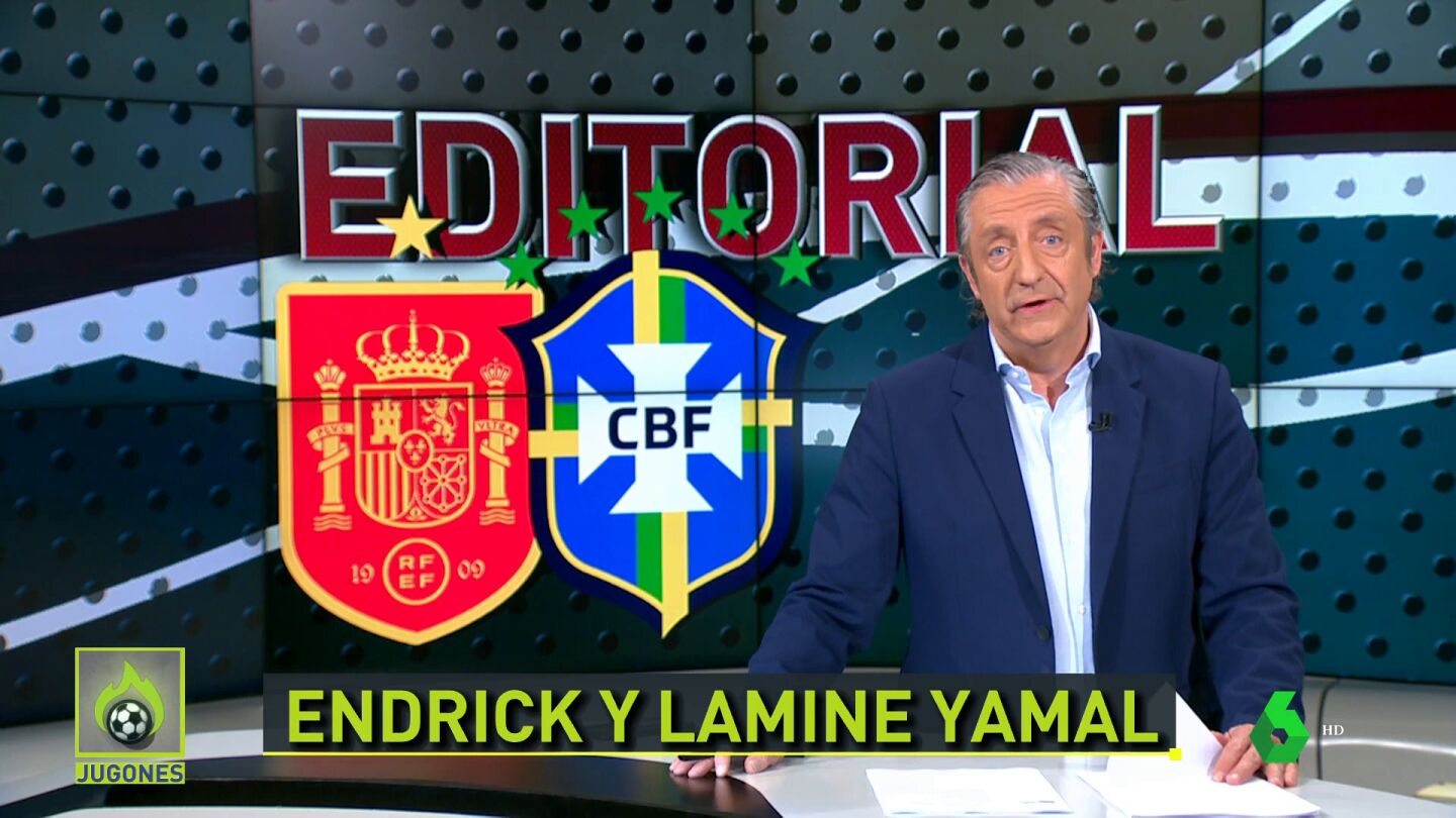 El presentador de 'Jugones' analiza en su editorial el partido entre España y Brasil y se queda con lo bueno: "Con el gol de Endrick y la ovación a Lamine Yamal".