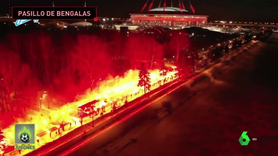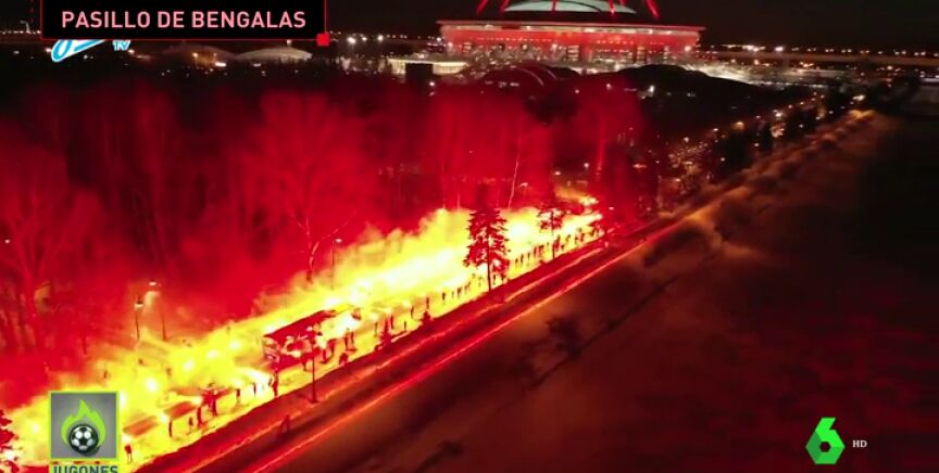 Los ultras del equipo ruso recibieron el autocar del equipo con una calle llena de bengalas