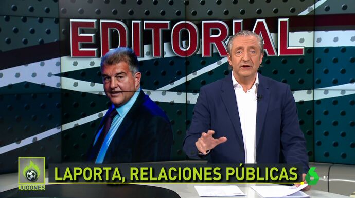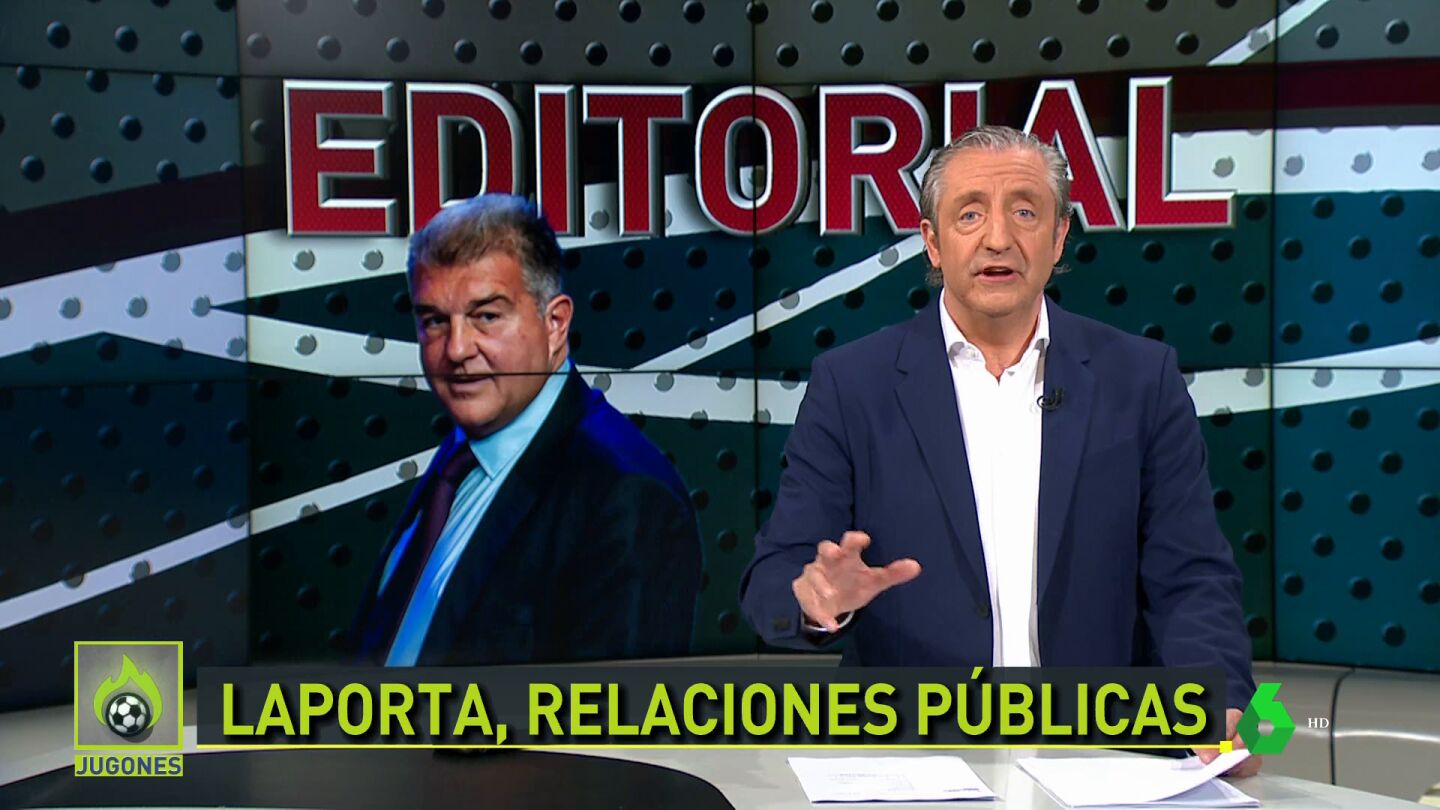 "Laporta ha empezado su labor como relaciones públicas. Más sonriente, más amable, más simpático. Normal, el Caso Negreira es muy grave": sentando cátedra, así ha empezado Josep Pedrerol su editorial en 'Jugones'.
